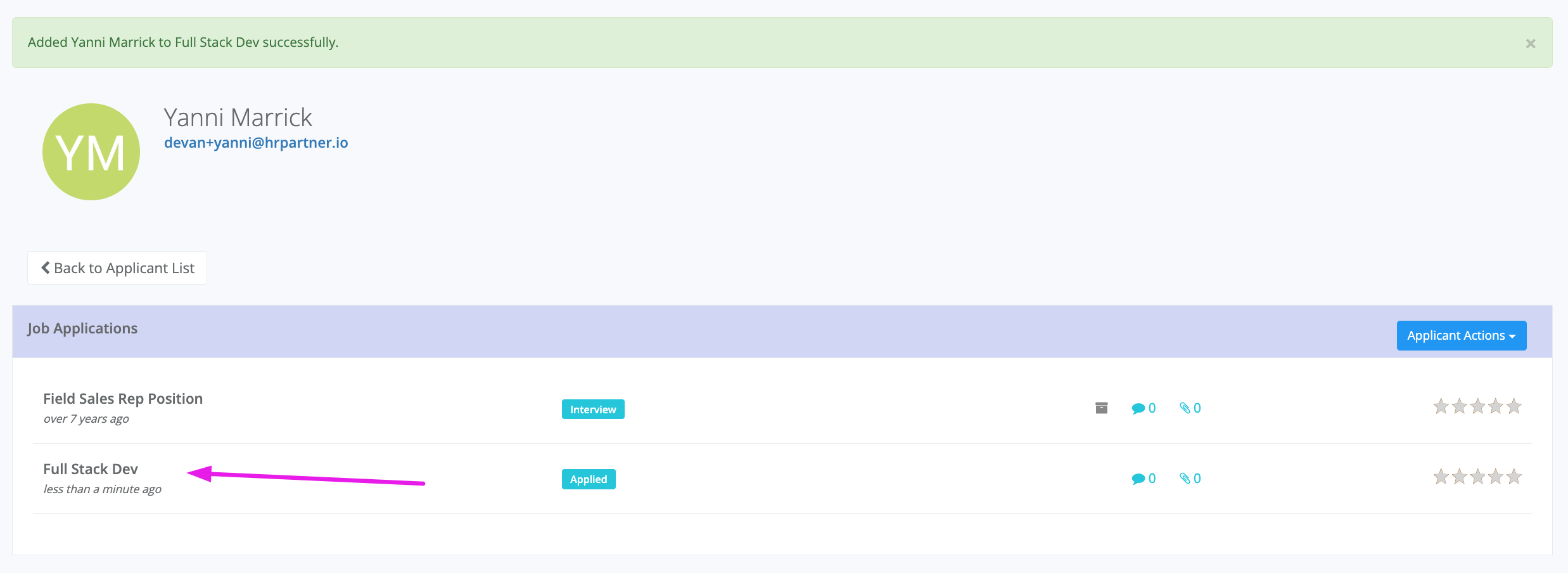 After that, you will see the new job they've applied for, along with any past positions they've submitted applications for.