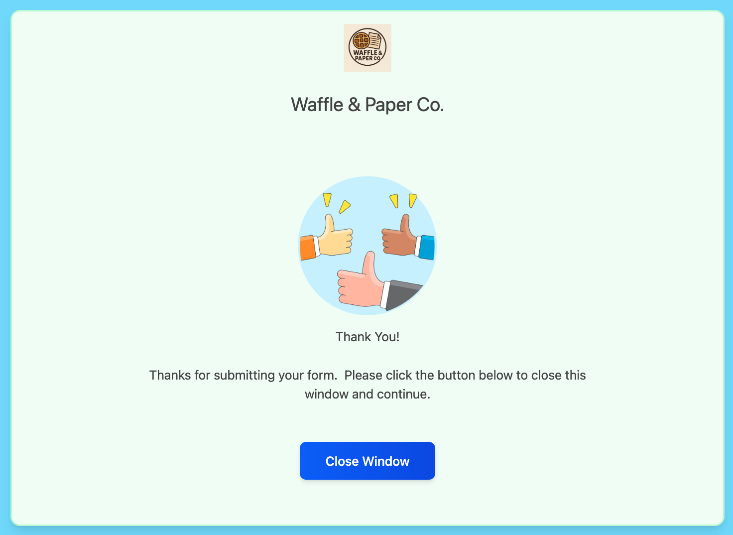 After you complete and submit your form, you should see the following message (Note: This message may actually be slightly different in your company, as your company admin can tailor this message to suit):