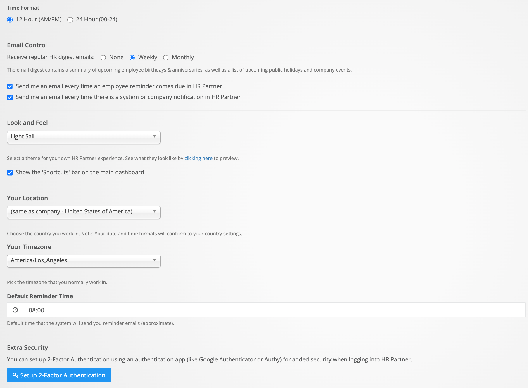 Changing information related to your own Admin User Profile is a very simple process and can be done from your Profile area of your own Admin User Portal in HR Partner.
