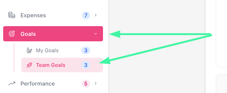 Heading to your Employee Portal, you may be able to see the "Goals" module in the main menu on the left. If you have direct reports, you can view and manage their goals by going to Goals > Team Goals: