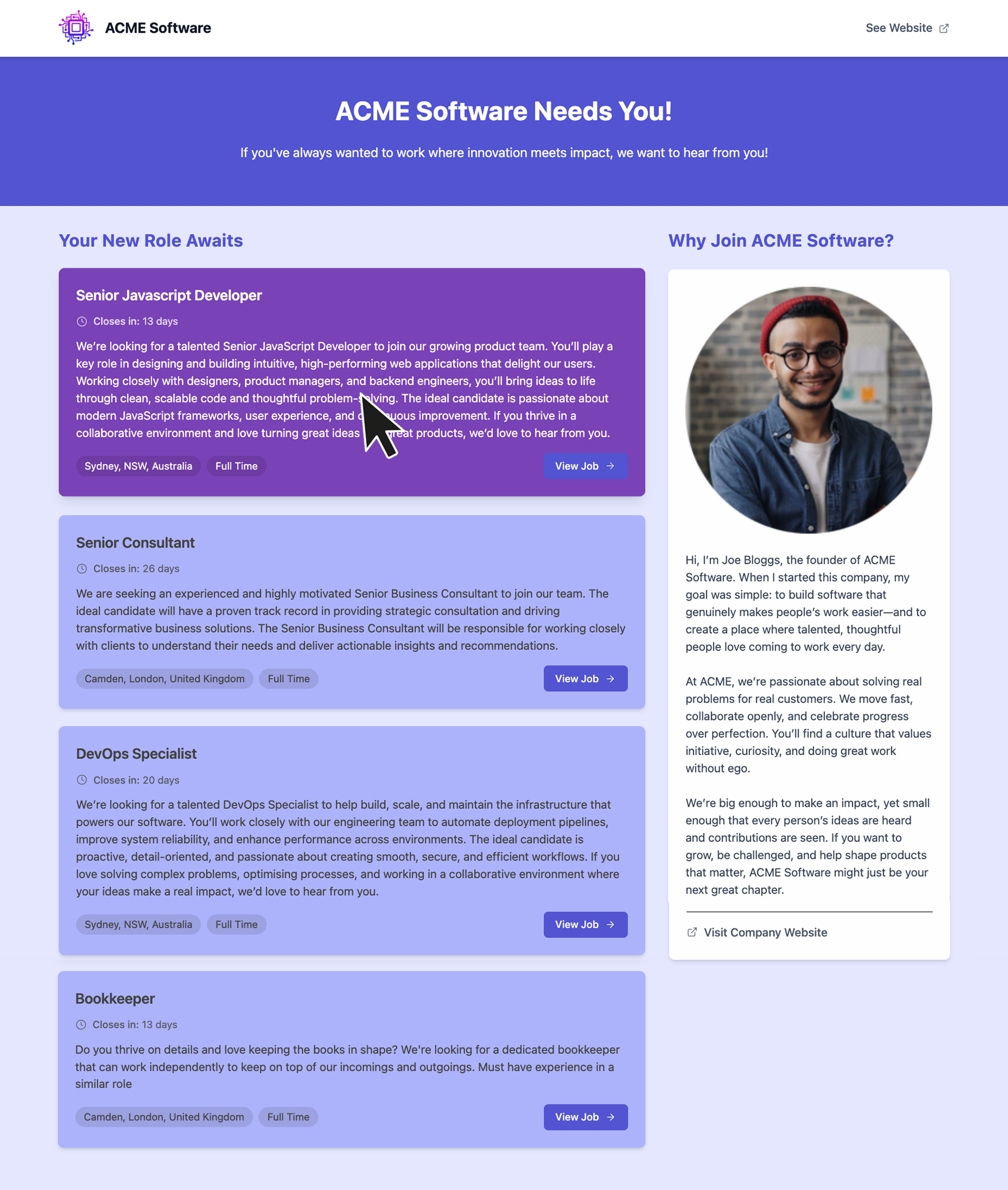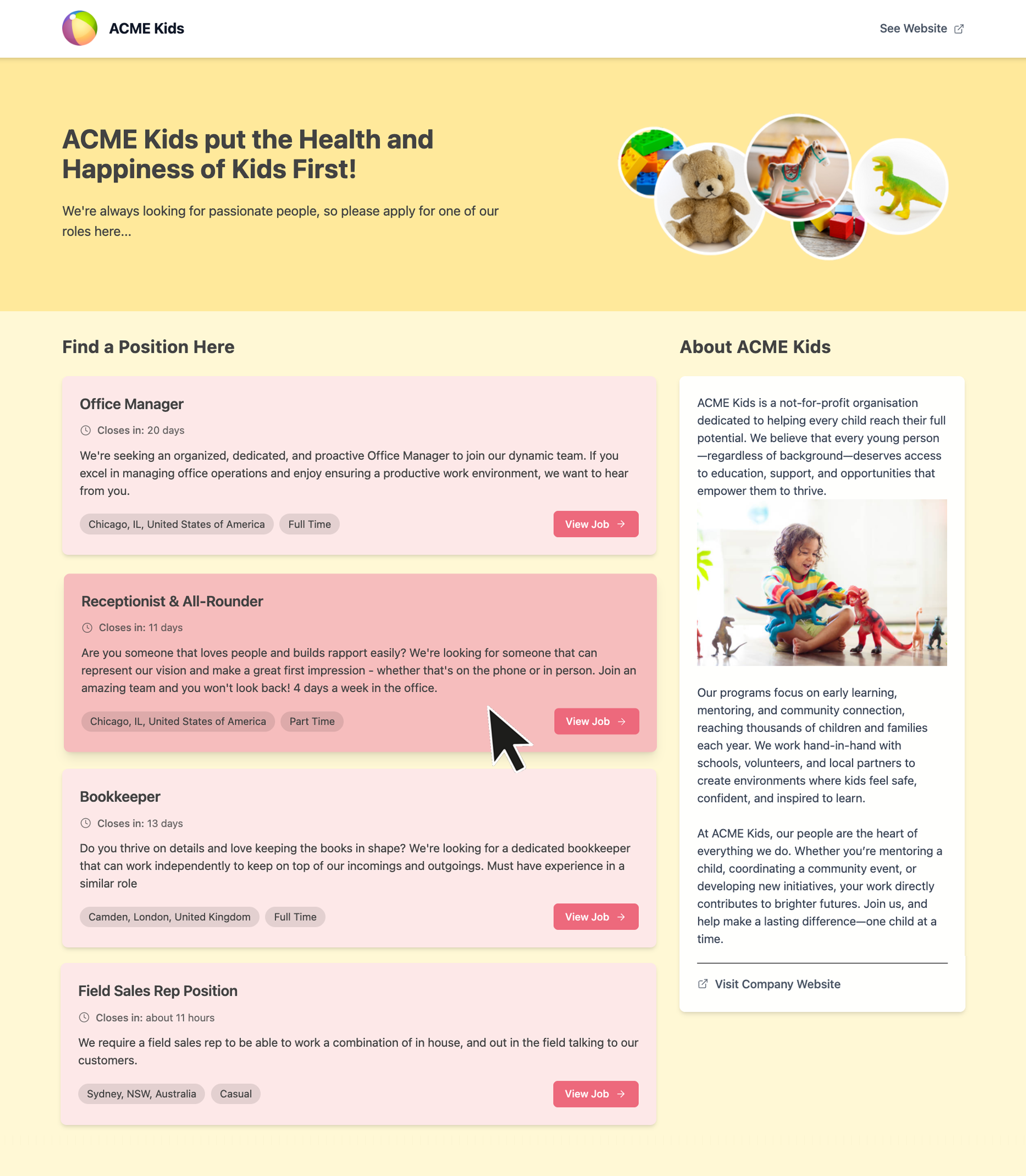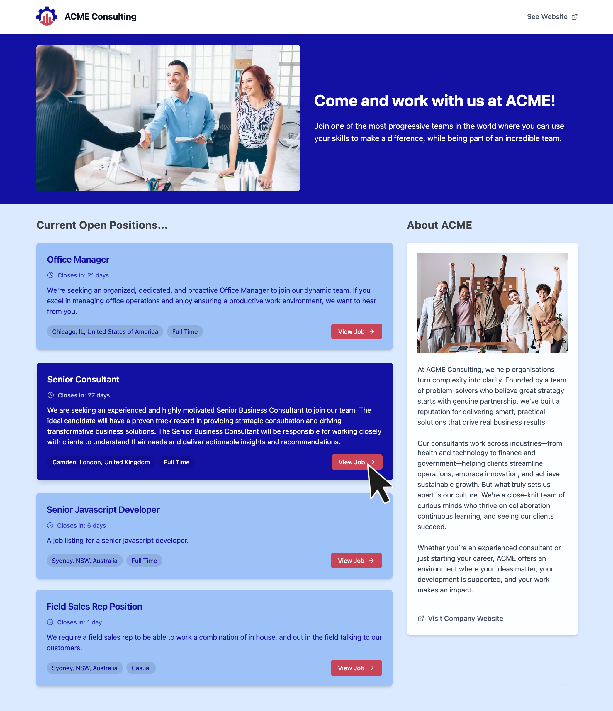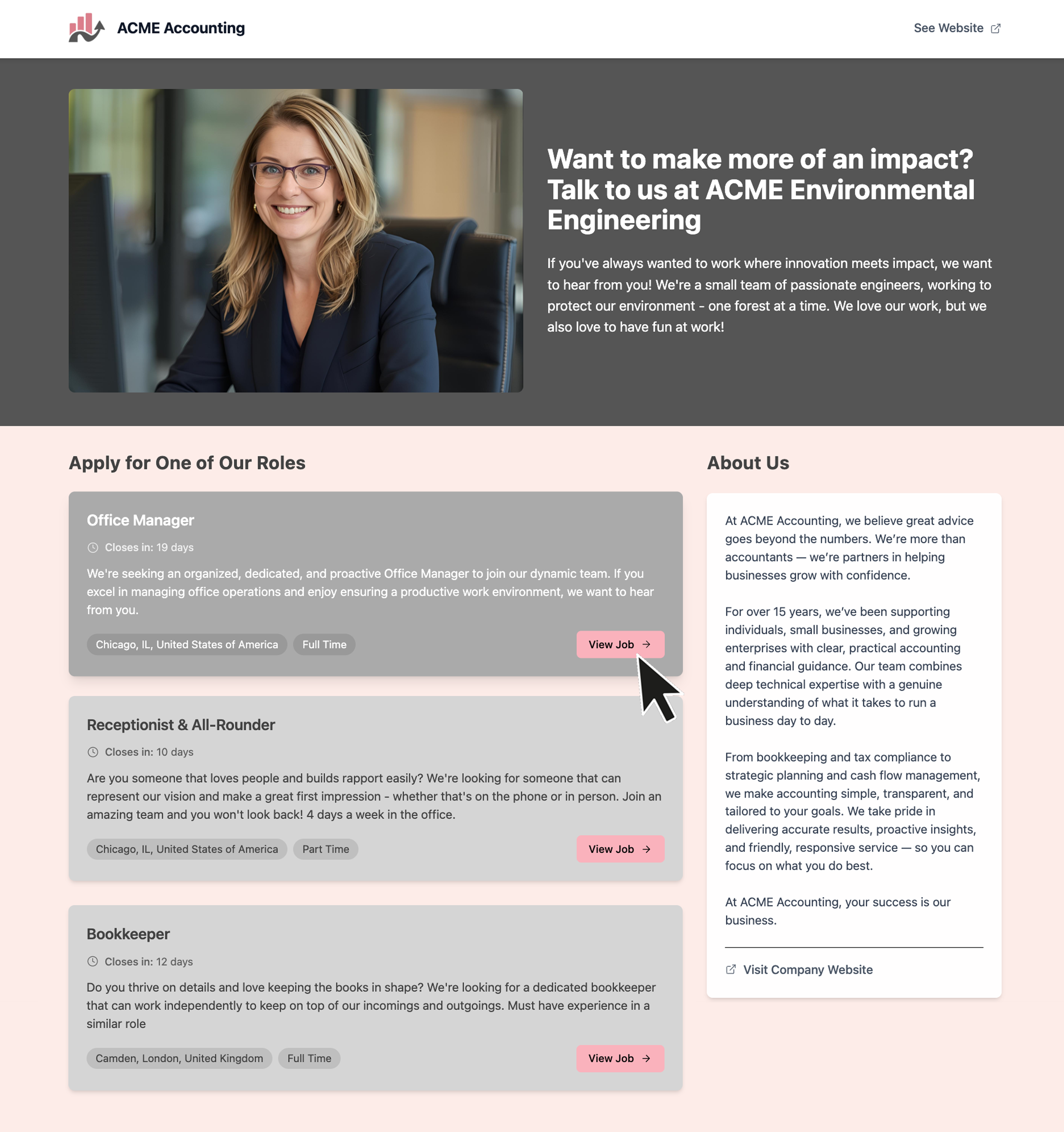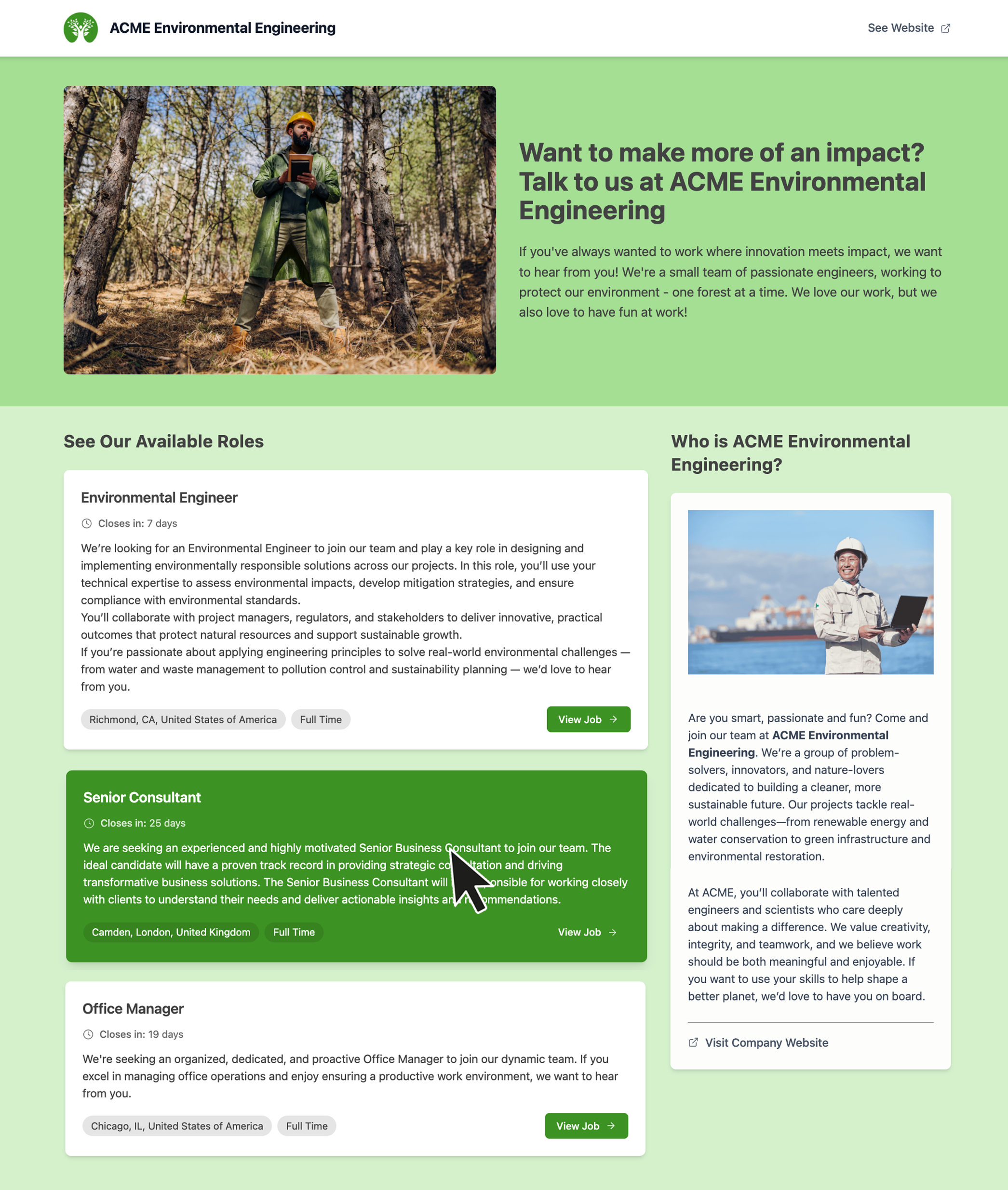 You can get instructions for configuring your Job Board here but in this article, we show you a few examples of the types of look-and-feel you can create for your job board.