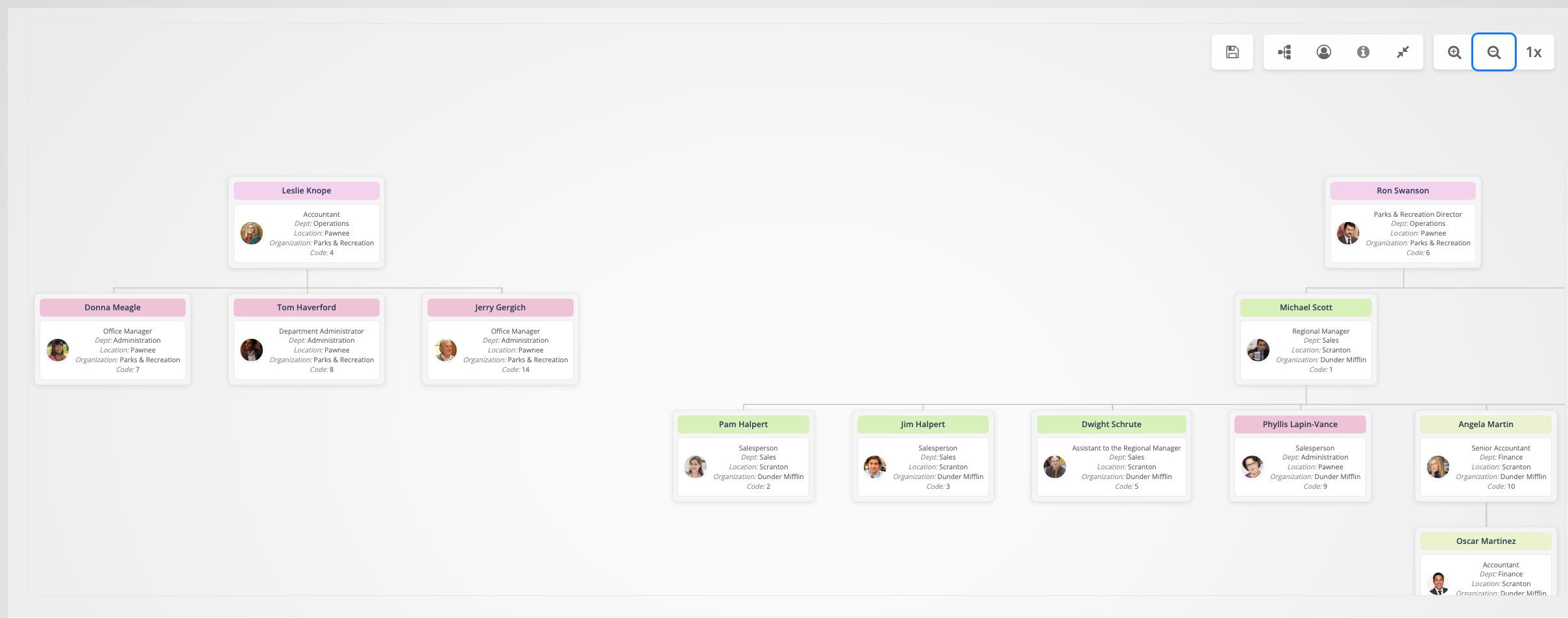 We've made it possible to have multiple employees with no manager above them. So now you can have multiple staff on the top row—as many as you want! This is particularly helpful if you have multiple C-suite-level staff who do not have someone they report to.