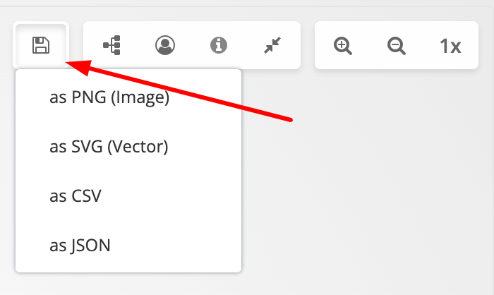 The 'floppy disk' icon allows you to save/export the Org. Chart in multiple formats, such as a PNG, SVG, CSV, and JSON file.