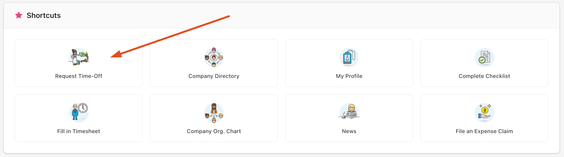 You can also click on the Request Time-Off button in the Shortcuts menu on your Dashboard (if this is displayed).